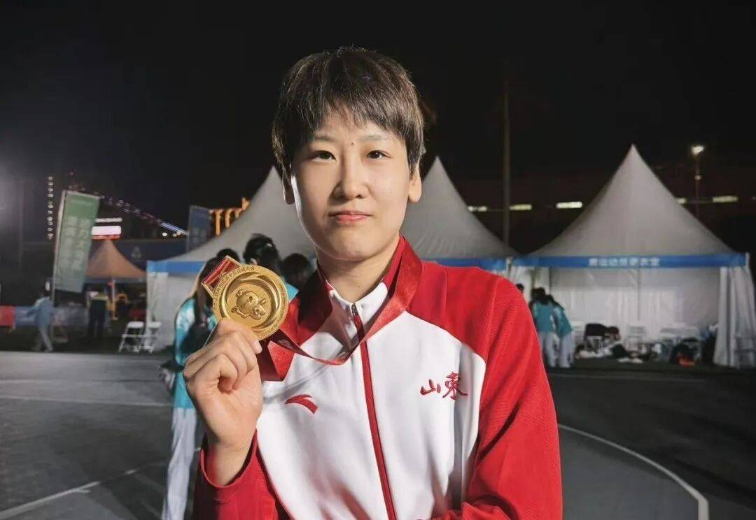 在第十五届全运会赛场上,曹君伟成为山东队的“定海神针”:小组赛两战全胜晋级后,1/4决赛中,她7投7中贡献8分4篮板,率队轻取重庆;半决赛面对劲旅四川队,她与队友默契配合涉险过关;决赛中,她在攻防转换中频频建功,帮助球队牢牢掌控局势。当金牌挂在胸前时,曹君伟感慨:“参加了四届全运会,一切都值了!”