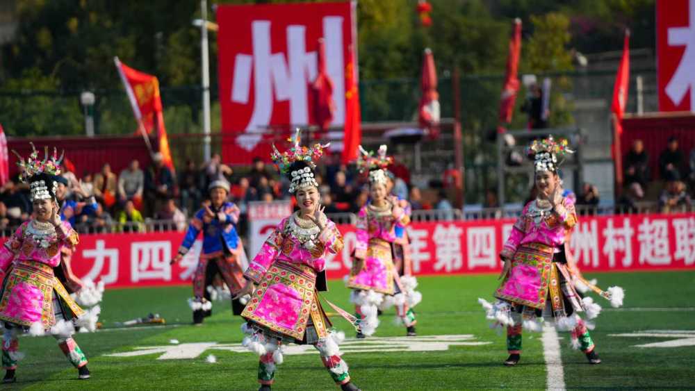 1月2日,演员在第四届贵州“村超”开幕式活动现场表演。新华社记者 杨文斌 摄
