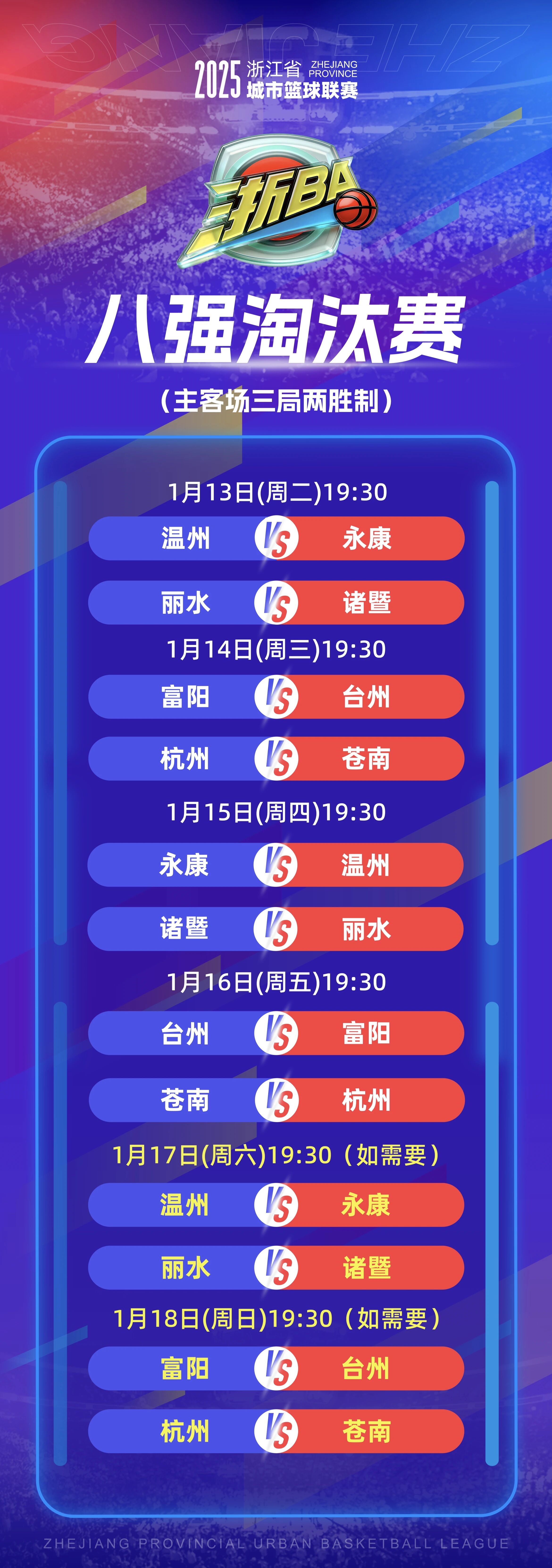 网球联赛,ATP赛程,WTA积分,网球直播入口,网球世界排名,四大满贯赛/实时更新全球网球联赛2025赛程、比分、排名及直播,全面覆盖ATP男子联赛、WTA女子赛事、四大满贯及国内网球比赛,为中文网球迷提供权威资讯与竞猜预测支持。今晚(1月14日),“浙BA”八强交叉淘汰赛八进四继续进行第一轮的两场比赛:富阳主场迎战台州队,杭州主场对决苍南队。