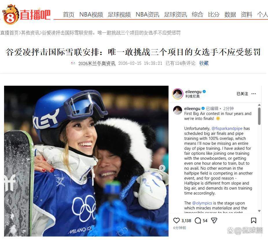 “摆明了是被针对了。赛程故意设计和训练时间冲突,然后人家申请一小时单独训练或者和其他选手共用都不给通过。就这样谷发声抗议,其他新闻底下居然还有喷事多的,希望你被针对的时候别叫冤。”