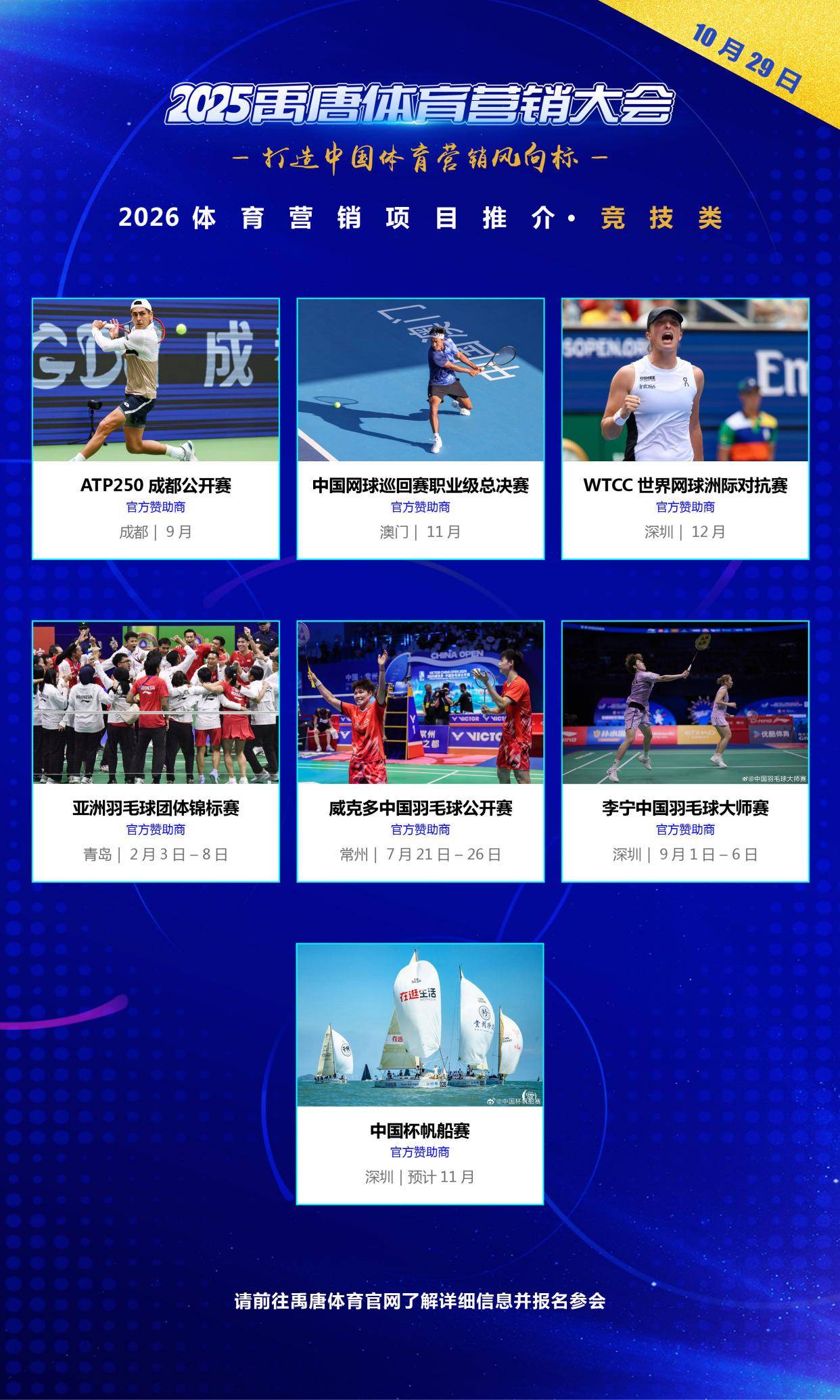 网球联赛,ATP赛程,WTA积分,网球直播入口,网球世界排名,四大满贯赛/实时更新全球网球联赛2025赛程、比分、排名及直播,全面覆盖ATP男子联赛、WTA女子赛事、四大满贯及国内网球比赛,为中文网球迷提供权威资讯与竞猜预测支持。2025年10月29日,禹唐体育营销大会——2026体育营销项目推介会以线上直播的形式成功举办。本场推介会全程吸引百余家国内知名企业市场品牌相关负责人参与,在线年的体育营销机会和方向