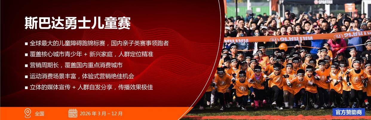 随着大部分城市家庭对子女体育运动和身体健康愈加重视,亲子类赛事正在成为产业发展的新风口。拥有成熟的赛事体系和全国布局的斯巴达勇士儿童赛,已经成为了规模庞大的亲子运动消费人群的第一选择。秉持“彼此激励,共同成长”的合作愿景,斯巴达勇士儿童赛始终力求在更体现健康生活的赞助品类中与合作伙伴寻求品牌理念的联动,从而达成深入到文化层面的,可持续性更强的良性合作关系,让“Earned, Not Given”的斯巴达勇士儿童赛口号成为赛事IP、参赛儿童和赞助商三方的共性精神特征。
