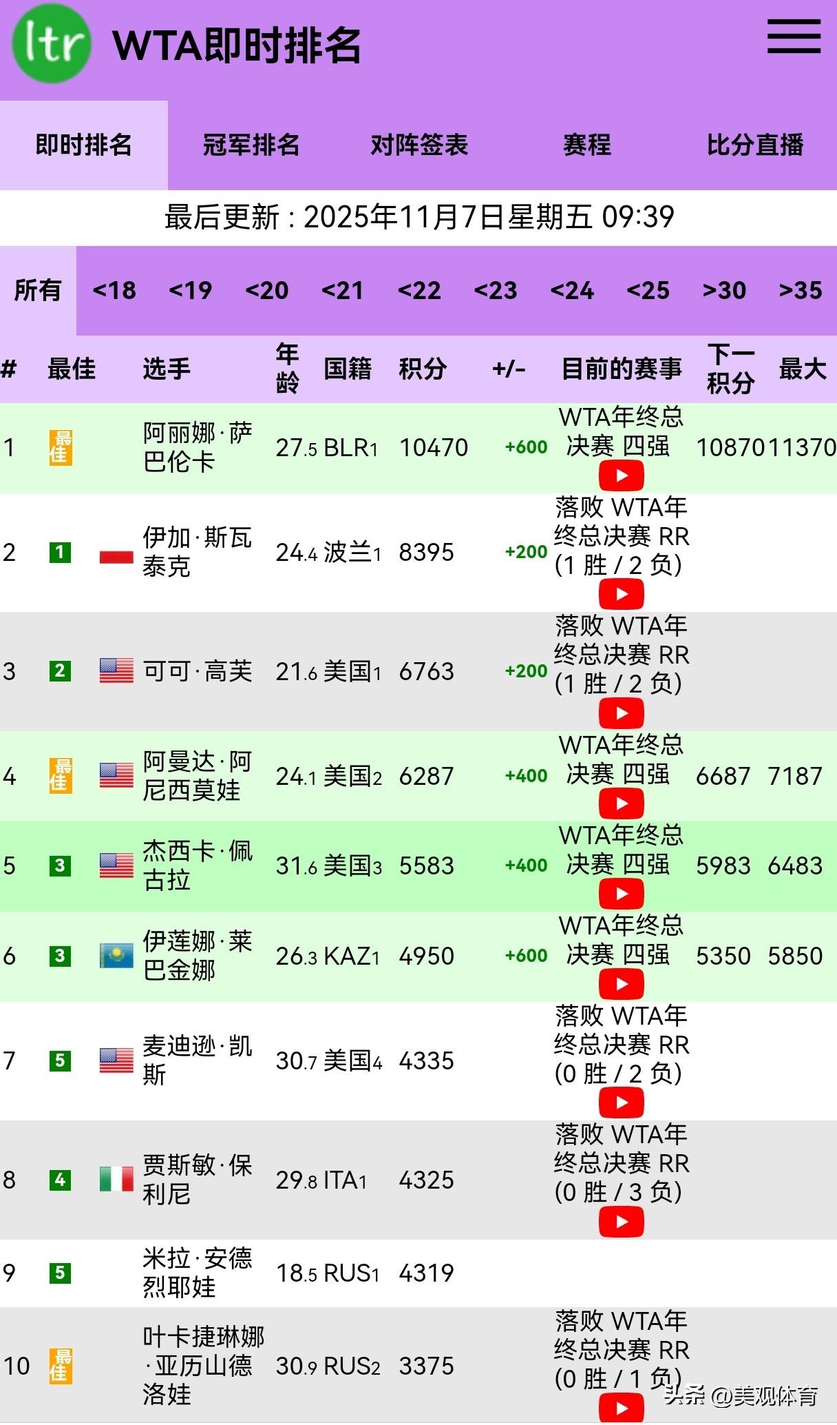 随着高芙出局,只获得200分的排名,如果阿尼西莫娃赢得WTA总决赛冠军,积分达到7187分,即时排名可以上升到职业生涯最高的世界排名第三。返回搜狐,查看更多
