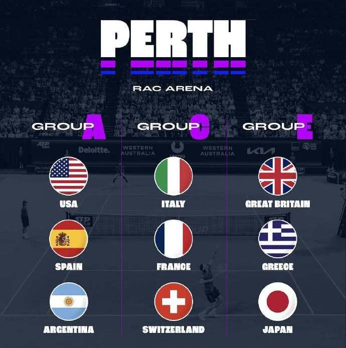 我们再来关注2026赛季的联合杯。北京时间昨天,这项混合团体赛的分组抽签结果出炉。珀斯赛区的三个小组是A组:美国、西班牙、阿根廷;C组:意大利、法国、瑞士;E组:英国、希腊、日本。