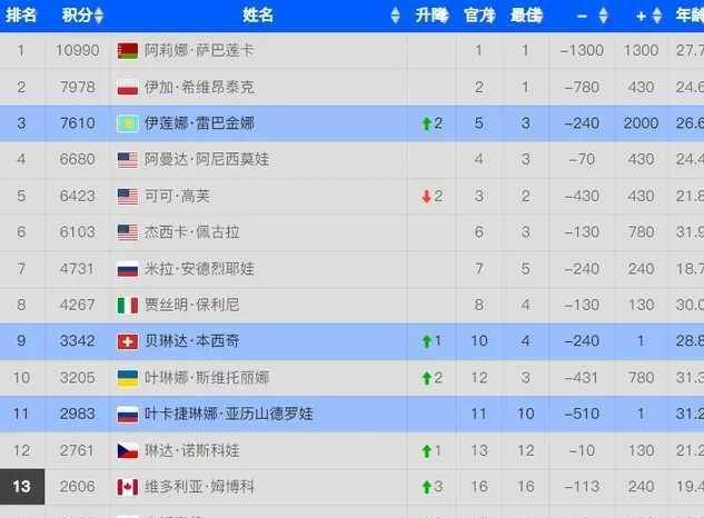 网球联赛,ATP赛程,WTA积分,网球直播入口,网球世界排名,四大满贯赛/实时更新全球网球联赛2025赛程、比分、排名及直播,全面覆盖ATP男子联赛、WTA女子赛事、四大满贯及国内网球比赛,为中文网球迷提供权威资讯与竞猜预测支持。一夜之间,WTA世界排名炸锅了! 莱巴金娜在墨尔本公园的硬地上演惊天逆转,2-1掀翻世界第一萨巴伦卡,不仅捧起个人第二座大满贯,更让积分榜瞬间洗牌。 你猜这“一夜”有多猛? 莱巴金娜狂揽2000分,总积分飙到7610分,只差斯瓦泰克368分! 而我们的王欣瑜,离个人最高排名就差那么一丁点,一个名次,一场胜利的距离,眼睁睁看着第32位从指缝溜走。 这排名变动的速度,比她反手回球还快!