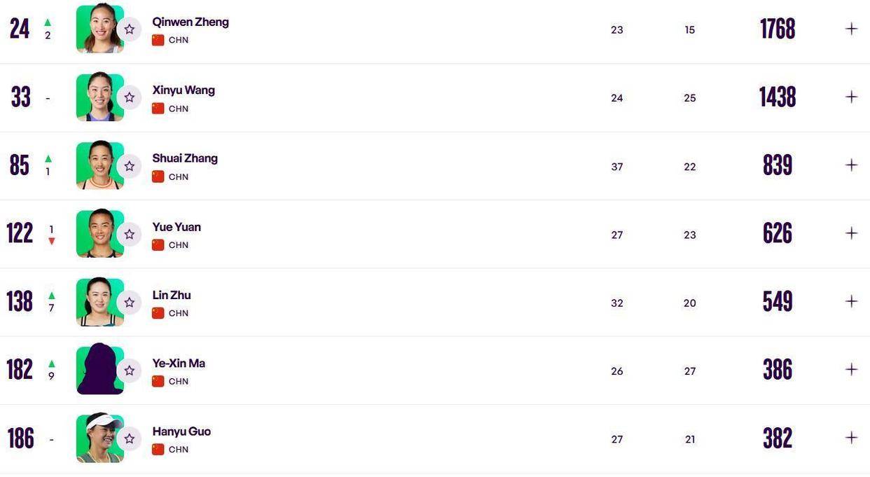 尽管无缘八强,但三场高质量的三盘大战已经为郑钦文的复出之旅开了个好头。 她的最新积分来到1768分,世界排名提升2位,目前位列第24位,重返中国金花榜首位置。